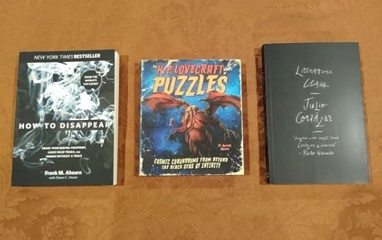That’s How to Disappear, by former skip tracers Frank M. Ahearn and Eileen C. Horan; The H.P. Lovecraft Book of Puzzles by Dr. Gareth Moore; and Julio Cortázar’s Literature Class, a collection of lectures on writing Cortázar gave a Berkeley in 1980.