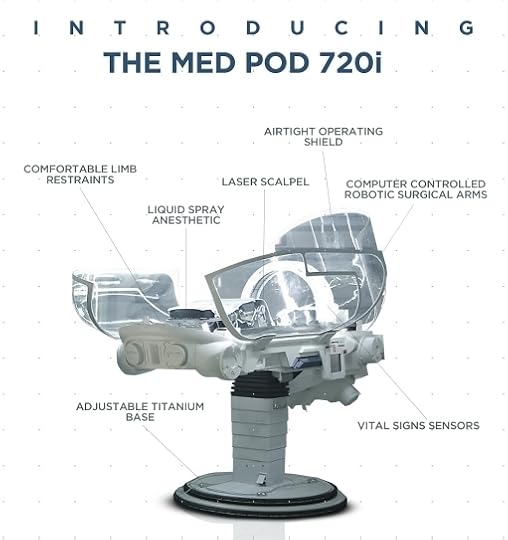 * “This medical pod is calibrated for male patients only” is a great laugh line, but ultimately doesn’t make sense. And the last time I saw someone recover from post-operative shock that quickly was in Logan’s Run.
