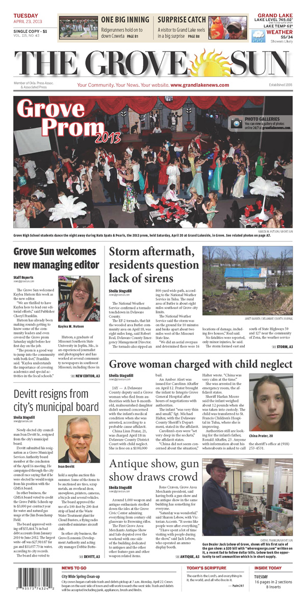 I can officially announce that I have accepted the position as Editor of the Grove Sun, a small newspaper operated by American Consolidated Media. I will move to Oklahoma within the next two weeks - to start on April 29. (http://grandlakenews.com/)