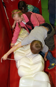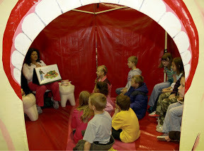 The first one took place in the "mouth" as students learned about brushing and flossing. I thought framing the pic with teeth and lips showing gave it a unique perspective.