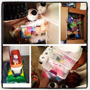 Organizing supplies, picking out stuff for the Happies, and just doing some "behind the scenes" to make it awesome for the kids who will come this week to Little Rock.