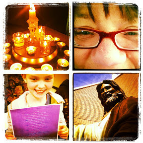 Day 3: See v. 1 to 4. (From upper left, clockwise) 1) Seeing Eucharist through the music of U2 - a U2Charist at First UMC Downtown. 2) I once was blind (literally) but now I see - more than a year from scary eye surgery. 3) I want to see Jesus thru the eyes of a child - looking at him from eye line of the child in the statue outside the sanctuary and 4) I want to see myself as others see me - Delaney and her Christmas poem about me. #rethinkchurch #stjamesumc