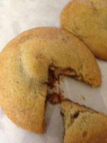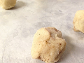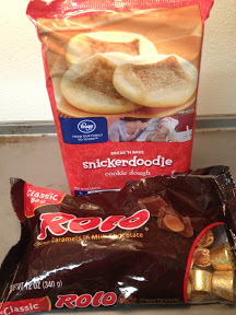 The concept is quite simple. Purchase snickerdoodle cookie dough and Rolos.