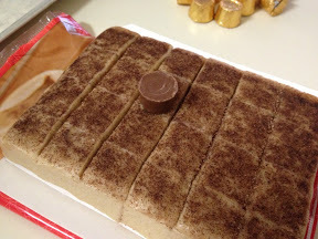 Step 1) Take the snickerdoodle cookie dough and flatten it out. Then you wrap the dough around a Rolo (pst.... don't forget to unwrap the foil..lol)
