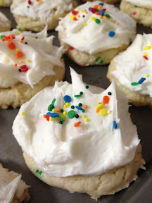 Step 4) We finished the cookies by icing them and topping them with sprinkles. The cookies kind of turned out like the "icebox" iced sugar cookies you can purchase at the "big box store." We used a container of store-bought icing and the enclosed sprinkles.