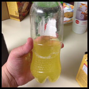 It said you needed to leave 1/4 of a bottle of Mountain Dew in the bottle - we put it into a smaller bottle for the "test."