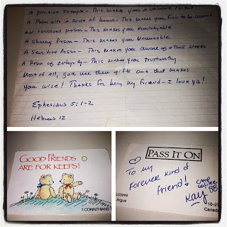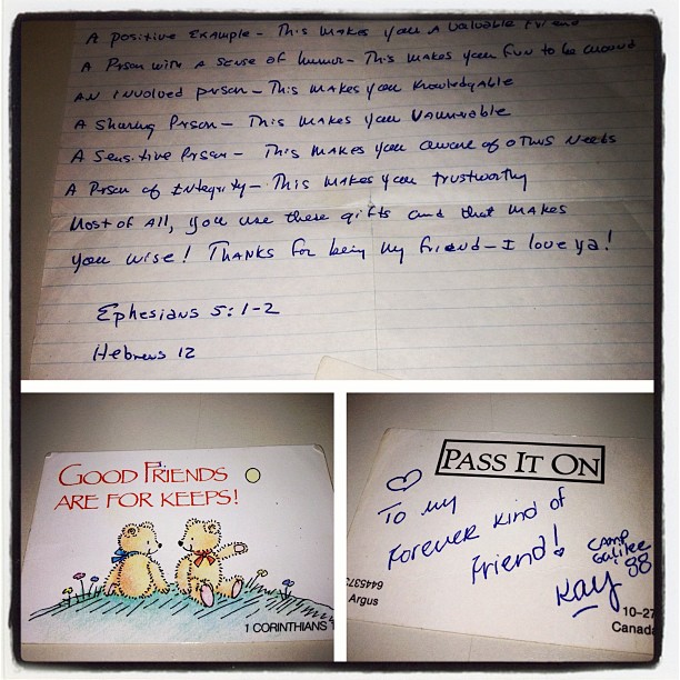 It's crazy, I still have at least two notes, one from a spiritual director, written to me in junior high, the other, from someone who truly became a "forever friend" back in 1988. I carry both of these notes in my Bible - along with a variety of other things that have great meaning.