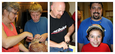 We made Sloppy Joes and Three-Bean Salad (FYI that's a lot of beans). Dessert was pound cake, donated by a local store. Someone we didn't know brought in fresh bread at 3 p.m. - so we sliced it for people in line.
