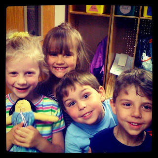 The other came, as I was having a random conversation with a teacher, and these four popped their heads out of the room (think baby birds chirping at a nest...lol).
