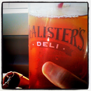 One of my favorite beverages - slightly sweet tea from McAlister's. (I generally do unsweet teawith a hit of sweet tea yummy.)
