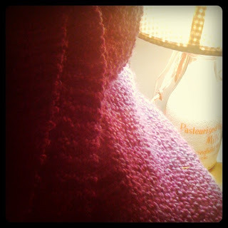 Ending the day wrapped in the prayer shawl that the St. James Prayer Shawl Ministry team gave me during "eye gate." last fall. (The lamp also makes me smile because dad bought it for me - it's made from an old milk bottle.