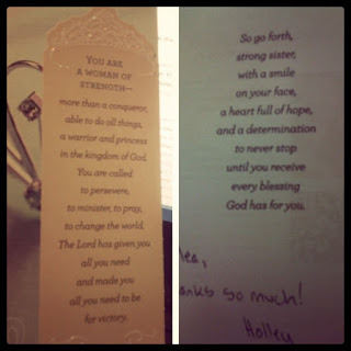 Besides her work as an author, Gerth creates a line of cards with DaySpring, a subsidiary of Hallmark. As an "added thanks" Gerth included a hand-signed copy of one of her cards with the review book.