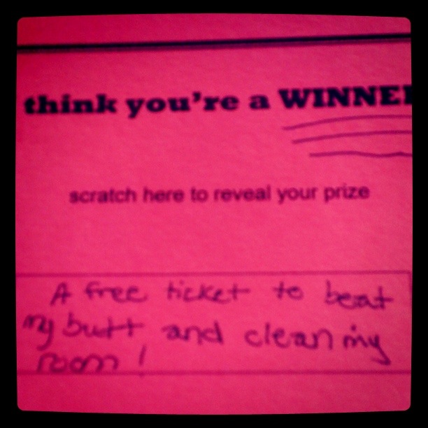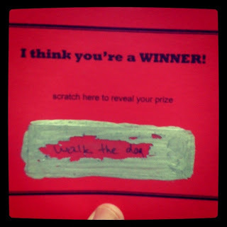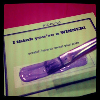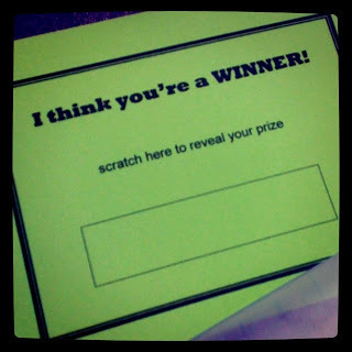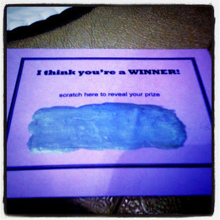 In our case, the card read: "I think you're a WINNER!(Scratch here to reveal your prize!)