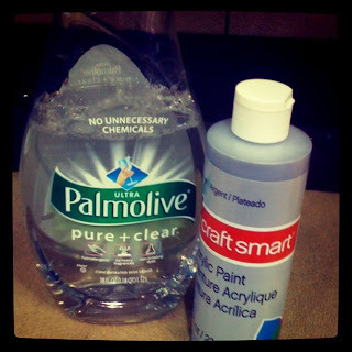 Step 4) Cover the contact paper with your paint/soap mixture. Basically two parts silver (metallic) paint to one part dish soap.