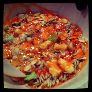 The extra ingredients in this "mess" were conversation hearts - to give it that "Valentine's Day" charm.