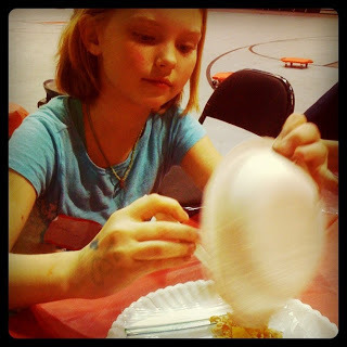 Of course, it wouldn't be a kid event without doing a craft or two. The moms in charge came up with some "boy-approved" Valentine's Day projects - Valentine's Vomit and Scratch-off Valentine's Day cards.