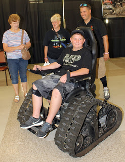 Kevin Summerlin with the Foundation for Exceptional Warriors watches as Jay Richardson, 15-1/2, from Colcord drives the tank chair. The group attended the 2015 REC Day Saturday, to let people know about its offerings for service members recognized for acts of valor or who were part of the special operations. For more information about the group, based in Pryor, persons interested may visit www.exceptionalwarriors.org or search "exceptional warriors" on Facebook.