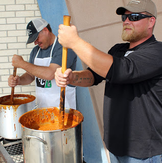 Kyle Lemasters and Charlie Coble cook up chili during the 2015 REC Day, held Saturday, Sept. 19, at the Grove Civic Center.