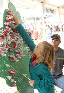 Alexis Currie, 8, reaches for a lollypop in a children's game during the 2015 REC Day, held Saturday, Sept. 19, at the Grove Civic Center. Currie won a bottle of bubbles as her prize.