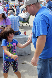 Shiloha King, 5, of Wyandotte, dances to the music of Dylan Hall and Pure Tradition with her uncle, James Hayworth, on Saturday, Sept. 19, during the 2015 REC Day at the Grove Civic Center.