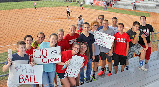 As part of the homecoming celebration, members of the student council voted honor Fracek by designating a portion of the homecoming t-shirt sales proceeds to the INTEGRIS Grove Hospital Foundation, for use in its efforts with cancer patients.