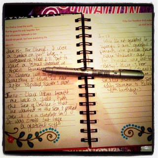 I decided to make this a goal for 2012 - to write a line or two of gratitude as a way to document a thought or an idea from each day. (The fact that I had a blank journal lying around was an added bonus!)