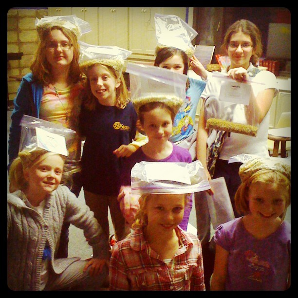 To do this, we made "Sharing Soup," that the girls (our guys were absent tonight) could share with someone - maybe a teacher, or a friend, or even a neighbor.
