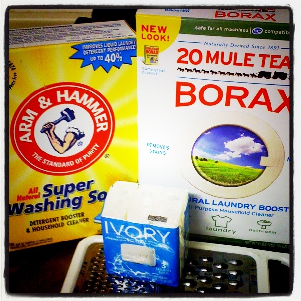 Ingredients For Both RecipesBorax Laundry Booster - $3.38 (box)Arm & Hammer Super Washing Soda - $3.24 (box)Three pack Ivory Soap - $1.24