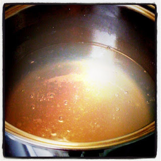 Note: I made a third of the recipe, because I don't have a huge pot, like my cousin. This made two "regular size" bottles of soap (about what I would have paid at least $8 for each, at Walmart).