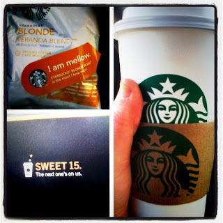 I forgot that they were having taste tests this week at the "bux" for their new coffee. I found out I'm "mellow" because I like the new "blond" roast.