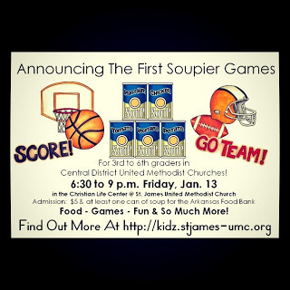 The Week's Big Event: The First Soupier Games. Trying to organize a HUGE district event - with lots of help, thanks to Laura and the crew. We have at least eight churches and more than 75 kids and adults coming to tomorrow night's event. Exciting times!