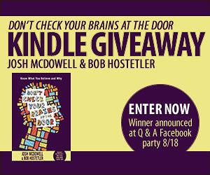 Win a KINDLE from @bobhoss @josh_mcdowell Don't Check Your Brains At the Door Giveaway. FB Party 8/18. http://ow.ly/5UEi8 #litfuse