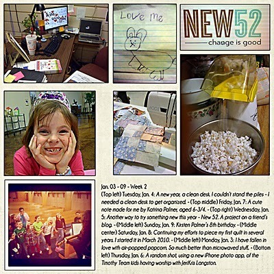 I try to post my New52 entry every Sunday after reflecting on the past week. If you participate this week, please leave a link to your blog post, scrapbook page, photograph or other recorded history of your walk on the wild side in the link list (on this post on her blog). You can also post images to our New 52 Flickr Group! We would love to see what you were inspired to do.