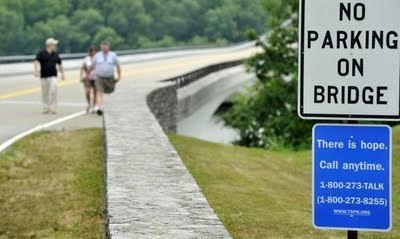 This is a new sign near the big bridge at the northernmost point of the Natchez Trace Parkway, outside Nashville. Over the years, about 150 people have jumped from the bridge to end their lives.