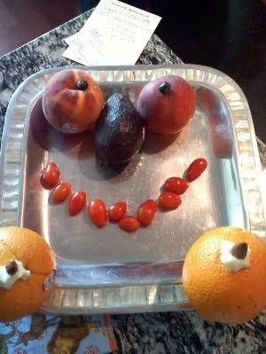Those of you who know me through my books and blog are well aware that I have a tendency to lean toward junior high in the humor department. I think I've met my match. The other night we had new friends over for cocktails (he, the husband of the duo, is pushing 70) and while we were talking he started playing with the cheese and crackers and fruit in the nearby fruit bowl ... and this is what he came up with.