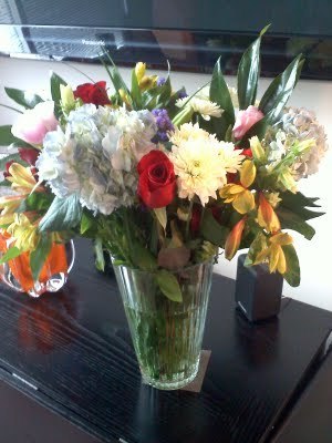 I usually don't like these mixed bouquets but this one included roses, hydrangeas, lilies -- and none of them dyed with fake color. This was $26 but worth every penny.Admittedly, I'm obsessed with things botanical. The protagonist of two of my novels (Househusband and Man of the House) was landscape architect for the stars of Hollywood. And did I ever tell y'all that my great grandfather was a world-class gardener from Germany, who emigrated to the U.S., where he grew immense award-winning mums for two U.S. presidents?