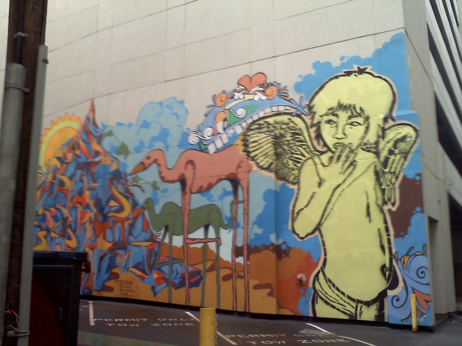 ... goes to whoever painted this awesome mural on the side of our highrise in downtown Nashville.