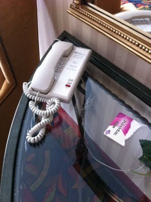 I've heard from my nomadic Kansas Correspondent again. (Remember the gentleman who sent us the photo of the huge fake eyelash left behind on his hotel chair?)