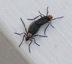 For those who haven't seen them, these little critters have sex while flying: the TRUE Mile High Club. Problem is, they're ... uhh ... well, they're a little distracted in the process and tend to float into the paths of oncoming vehicles.I do admire their zeal for multi-tasking ... though often unsuccessful.