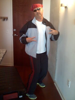 Honestly, I am not goosing him or doing anything inappropriate. What on earth is he covering his eyes for? Isn't this the weirdest photo?