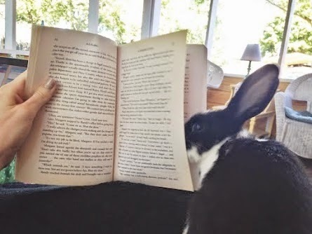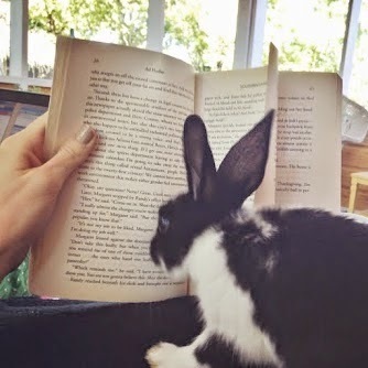Submitted by a reader: These photos of a very-smart bunny engrossed in one of my books.