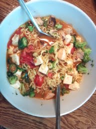 As a writer who works at home I find myself foraging in the 'fridge for lunch -- and on a cold day cheese and crackers and carrot sticks just won't cut it. This is why I have invented what I call the Souper Bowl, which involves packaged ramen noodles .... WAIT, WAIT, WAIT, don't leave me yet. It's better than it sounds.