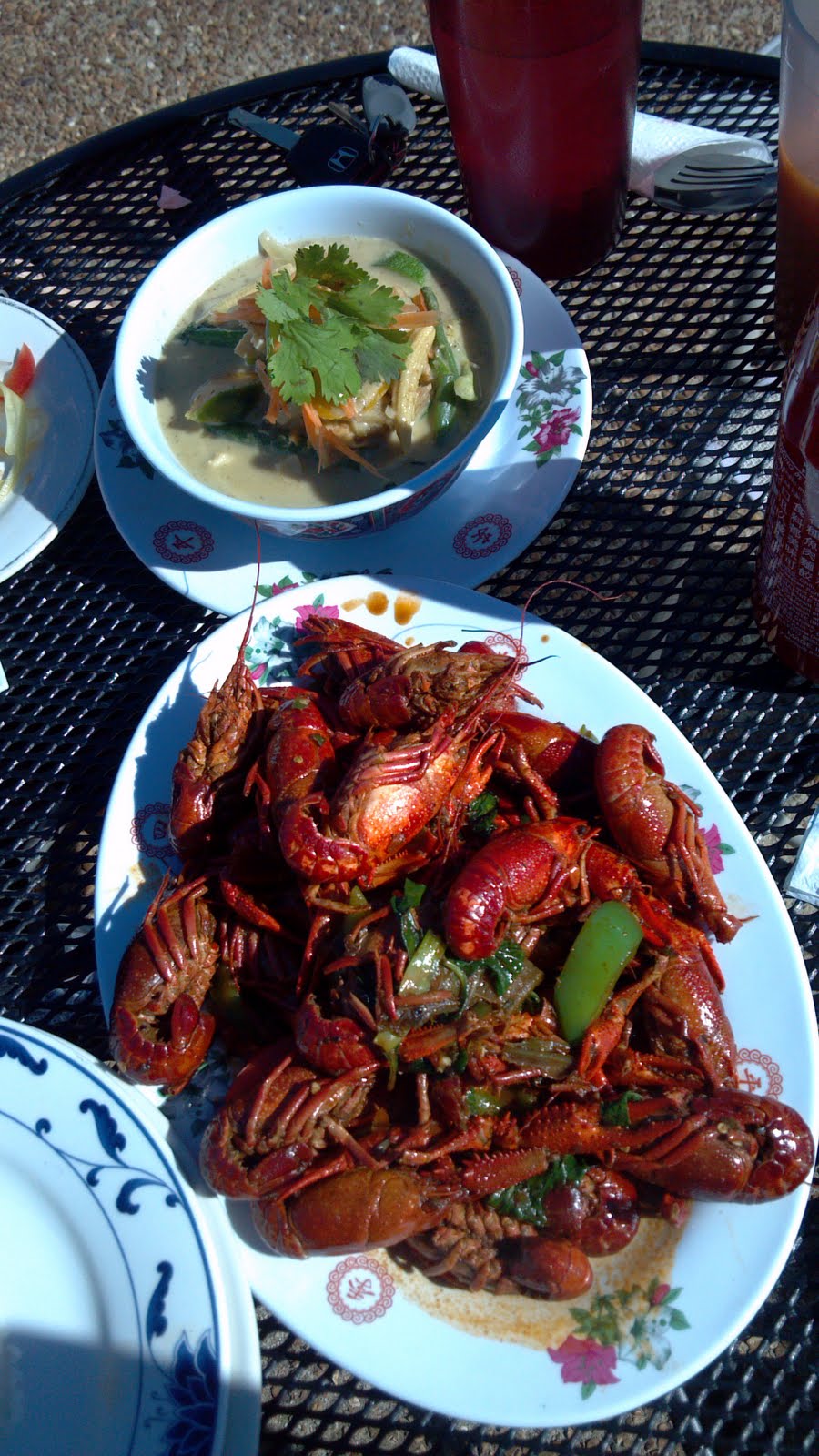 Green curry and a plate of whole crawfish sauteed in basil and garlic. Ain't it pretty?