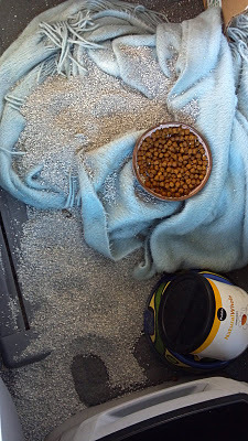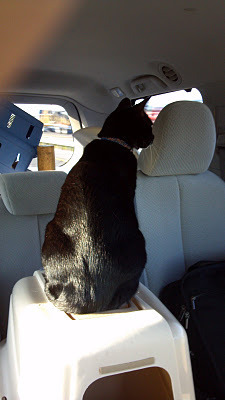 While Thomas, The Elder, responsibly hunkered down, beneath my seat, Mitchell decided he wanted the highest view in the van. And, because he finally shut up after finding this perch, we left him there, like the weak, indulgent parents I've judged so many times before. And this was fine ... until, while driving at 79 MPH, we came upon an 18-wheeler STOPPED IN THE MIDDLE OF THE INTERSTATE.Gravity happened. Catbox catapulted against the back seat. Mitchell became airborne.