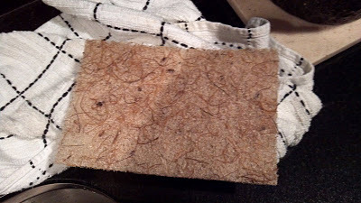 Yep, instead of my usual green dish-washing scratchies I bought this one made of .... well, I'm not sure what it's made of. I think it's recycled plastic bottles and, best as I can tell, yak hair ... which sheds as you're doing the dishes.