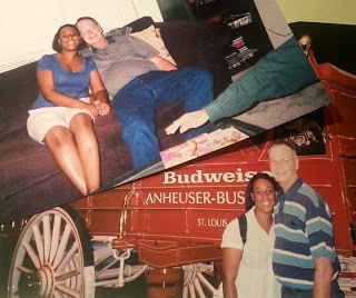 Top Pic: Tom and I at home. Bottom Pic: Tom and I visiting the Busch Brewery on a trip home to meet my family.