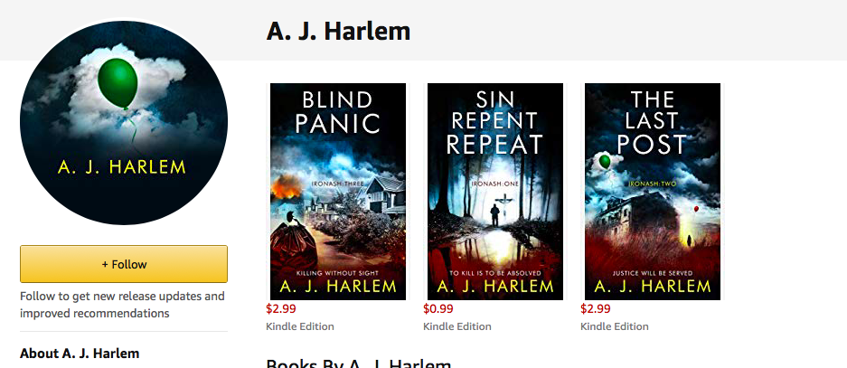 Follow A. J. Harlem on Amazon to get an alert when new books are released in the IRONASH series.