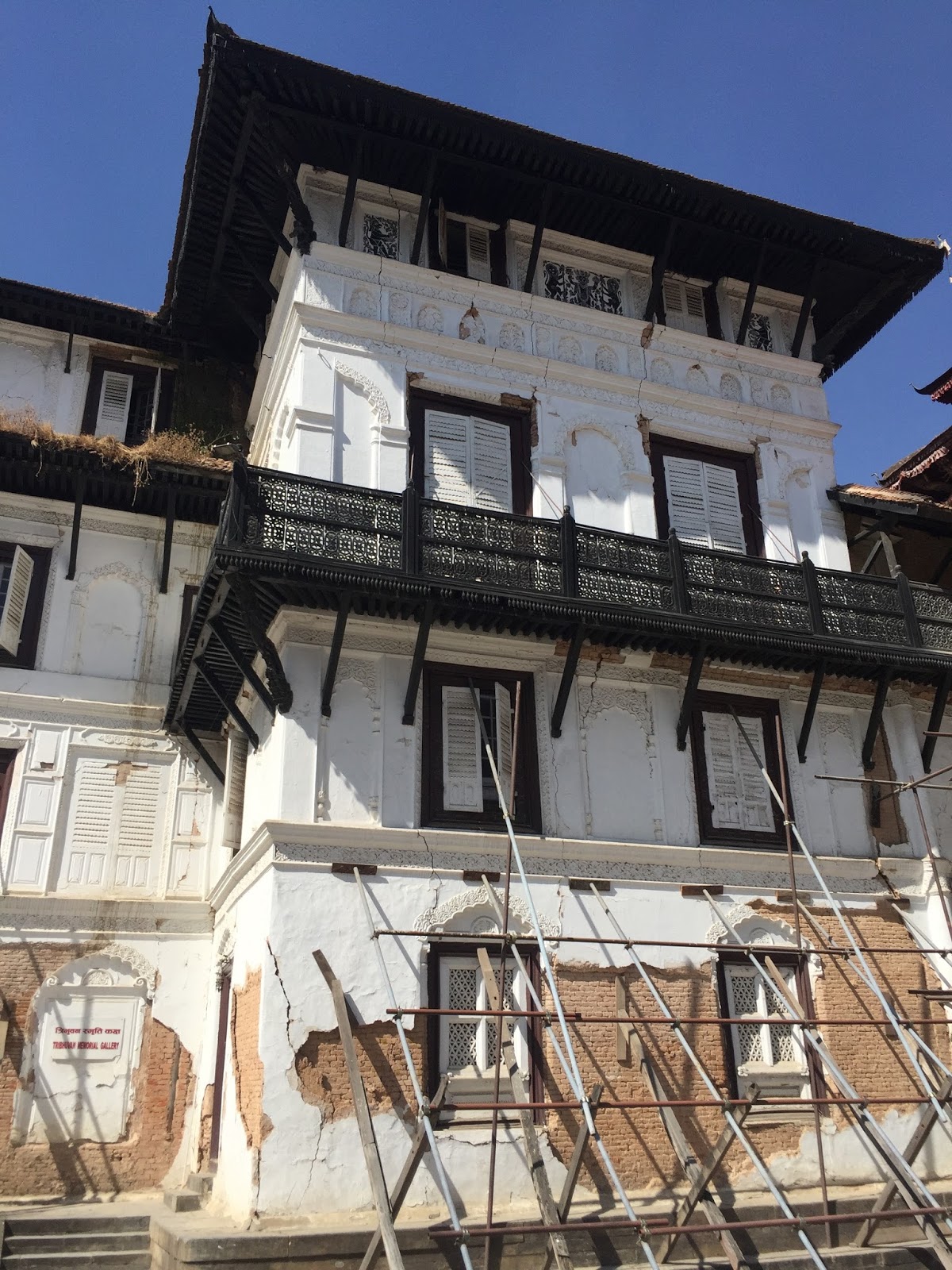 Restoration work from the 2015 earthquake is still very evident, it's a long and painstaking process. Look at the crack at the top of this building.
