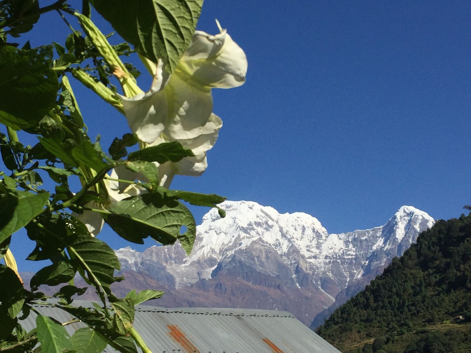 Flight to Pokhara and a first view of the Annupurna range we'd be trekking in.