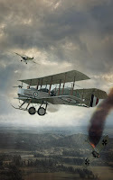 Scottish artist, Jay Stringer created this image for me of a RFC fighter flying in the cloudy, rain-filled skies of France fighting German fighter planes. I asked specifically for this kind of image, knowing how many, many, many readers out there are armchair military history buffs. I'm betting on the possibility the reader will first be attracted and drawn into a rip-roaring tale of military history. And discovering a secondary delight in finding a character who is an art-thief and accomplished adventurer.